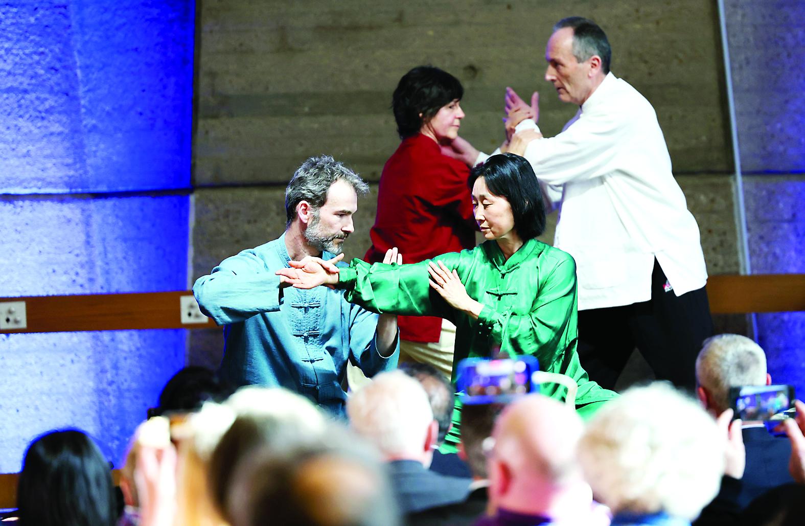 3月18日,太极拳习练者在活动上表演。当地时间3月18日,首个“国际太极拳日”即将到来之际,以“健康生活,太极同行”为主题的庆祝活动在法国巴黎联合国教科文组织总部举行。来自中法两国的太极拳习练者同台献艺,展现太极拳的独特魅力与深厚内涵,向世界传播中华优秀传统文化和科学健康的生活方式。