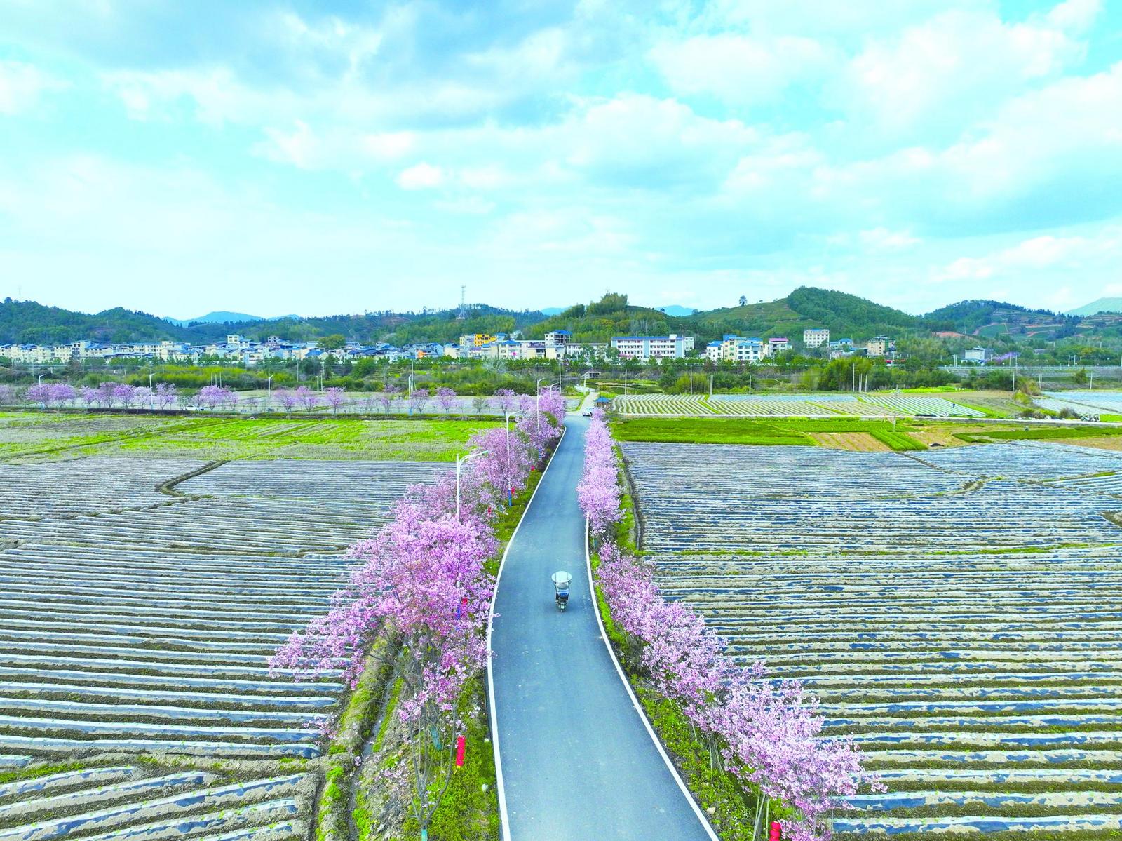 春分时节,崇阳溪漫游道沿线的武夷山市兴田镇春意盎然,繁花满枝,通往各个村落的主干道上,来看花的车子排起了队。