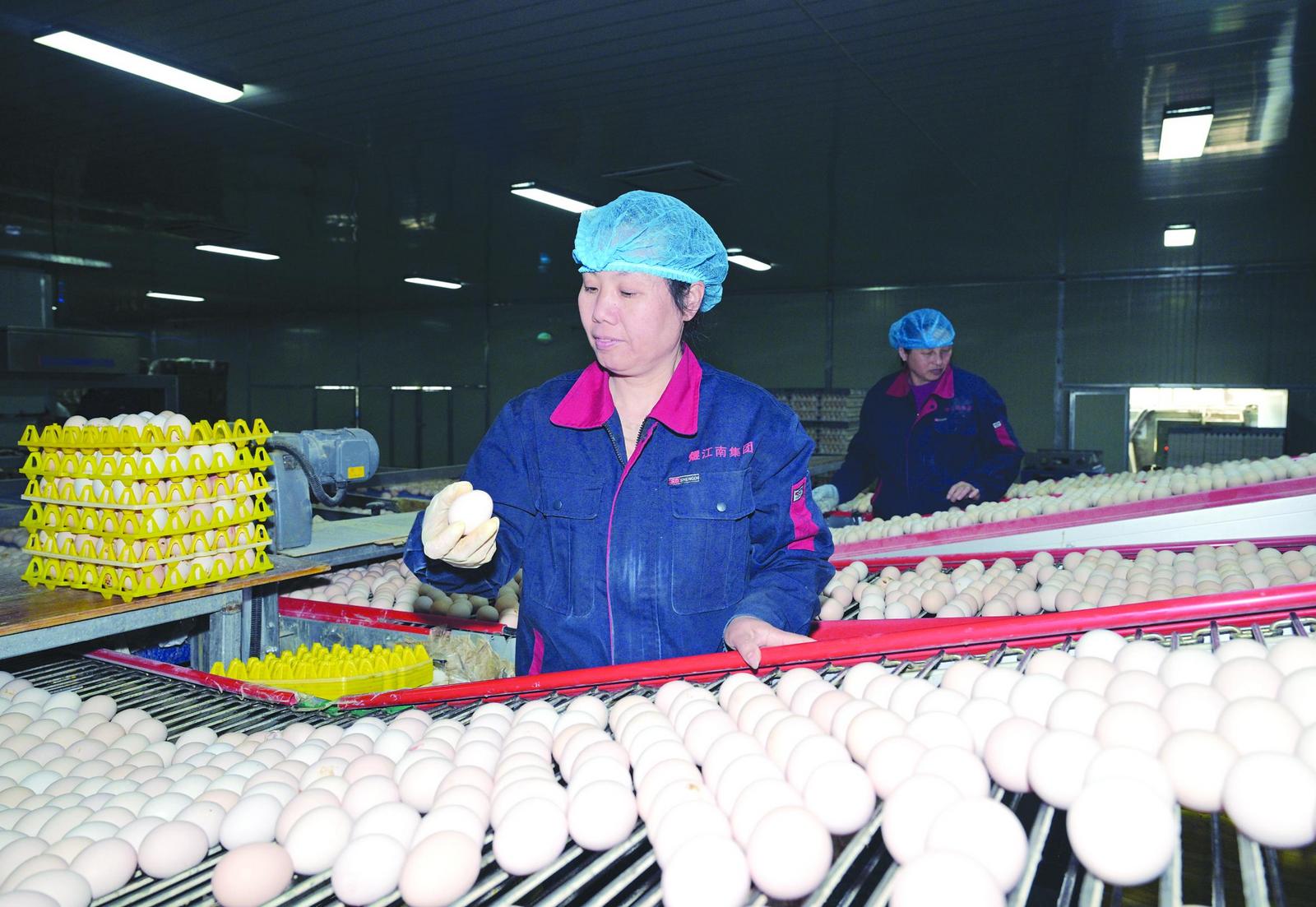 20日,在位于建阳区回龙乡的福建省恒亮生态禽业有限公司生产车间内,工人在输蛋线上挑选鸡蛋。作为华东地区单体规模最大的无抗蛋鸡养殖基地,该企业蛋鸡存栏达200万羽,日均产鸡蛋150万枚。依托规模化、现代化养殖优势,企业鸡蛋产品成功入驻沃尔玛、大润发、永辉等国内一线品牌商超。 (罗光耀 曾庆芬 摄)
