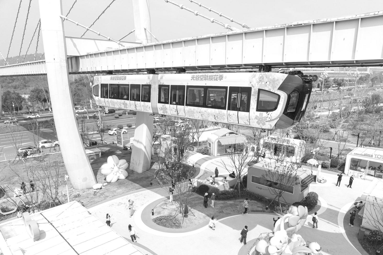 图为3月21日,一列空轨列车在运行中。