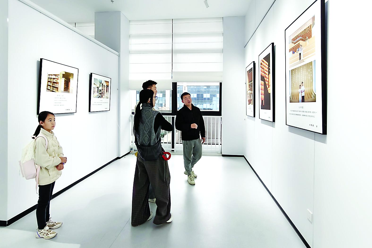“我和我先生都从事图书相关行业,因书结缘,因阅读而相知相爱。”在展出的作品《以书为盟》前,邹诚景望向展墙上的合影颇有感触,“领证当天,我们就来到了图书馆,在一楼服务台、少儿阅览室的旋转楼梯,以及二楼中庭都留下了纪念。”于他们而言,书不仅是事业,更是情感的见证和精神的栖息。