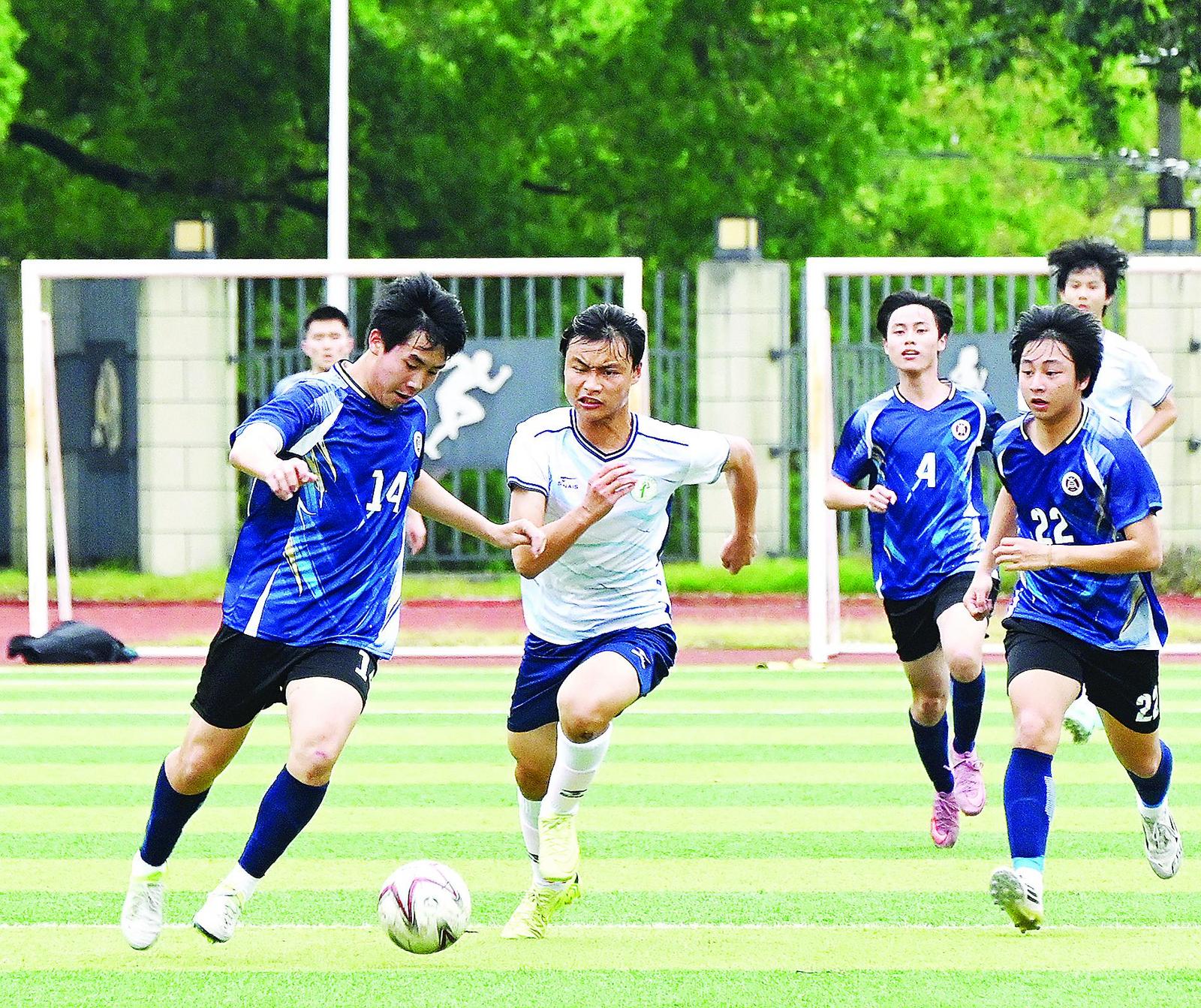 28日,由福建省教育学会指导,南平市教育局、南平市体育局、福建省教育学会校园足球发展委员会主办的“体教π计划”——“我的校园主场日”山海协作足球交流活动在建阳一中开幕,来自福州外国语学校、福州金山中学、南平一中、建阳一中的4支球队,以友谊为桥梁,切磋技艺、凝聚情谊、展现风采。图为福州外国语学校与南平一中球队开展交流赛。 (张行健 摄)