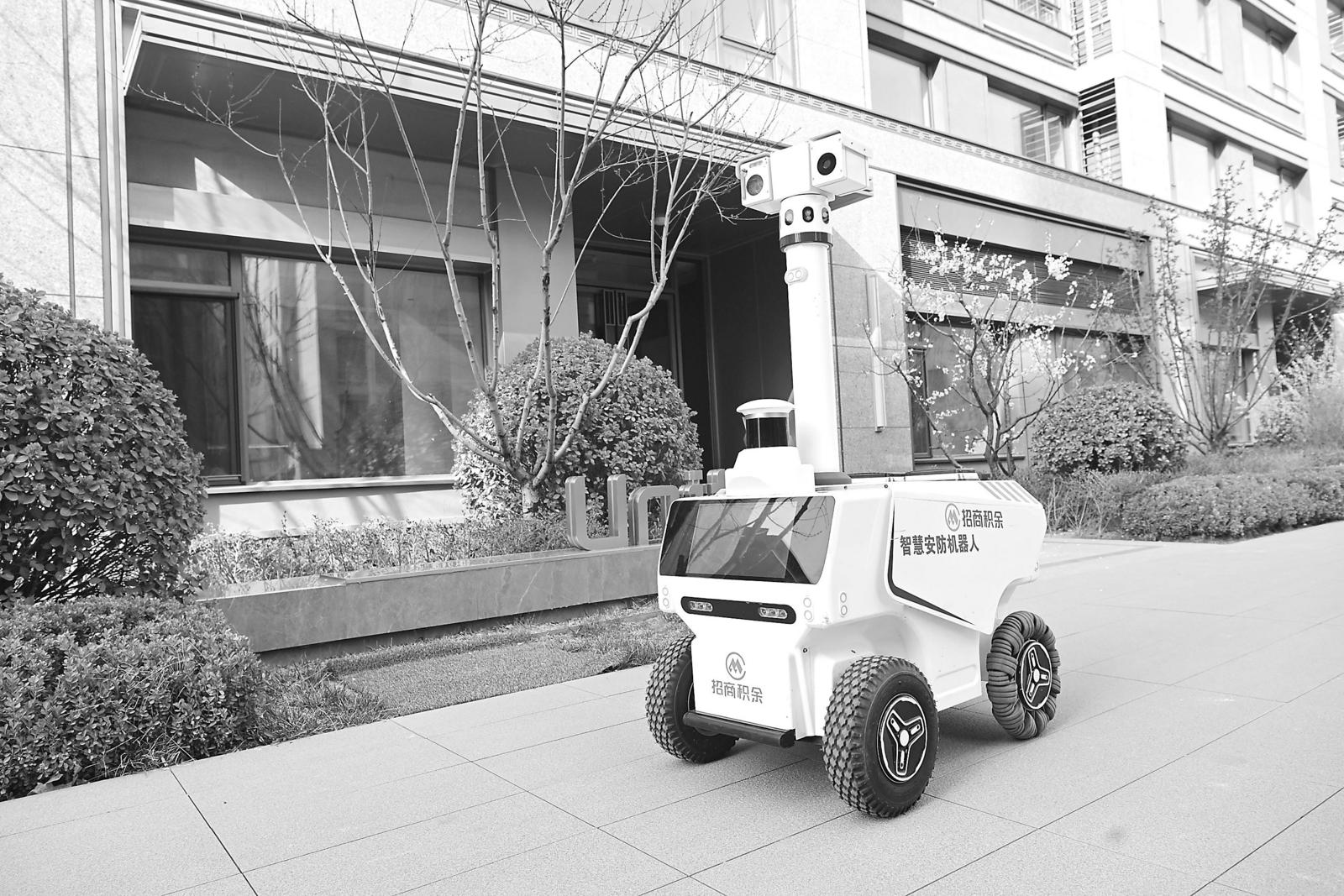 智慧安防机器人在雄安新区华清园小区巡查(3月25日摄)。该机器人具备全天候自动巡逻、环境监测、人体检测、车牌识别、烟火识别等功能,能够完成部分夜间值守、重点区域巡查等工作,提升社区安全感和治理效率。 (新华社记者 朱旭东 摄)