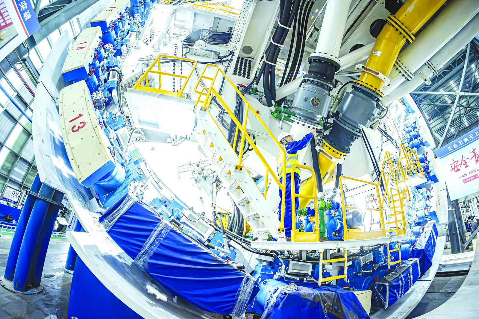 3月31日,中铁十四局监造人员验收盾构机泥浆环流系统。