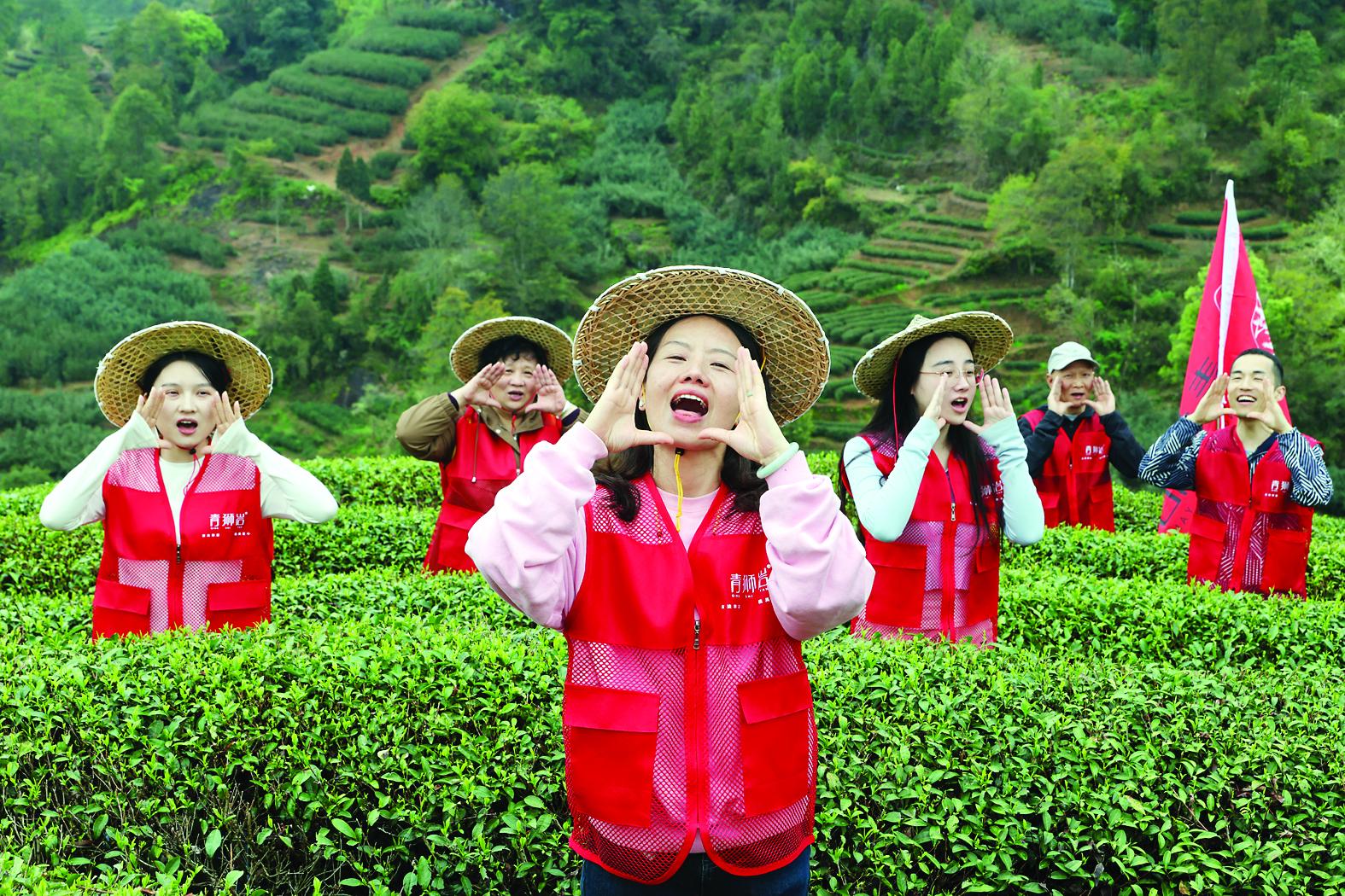 3月29日,来自湖北武汉的茶人来到武夷山青狮岩茶业有限公司的原生态山场,参与体验“喊山祭茶”仪式。