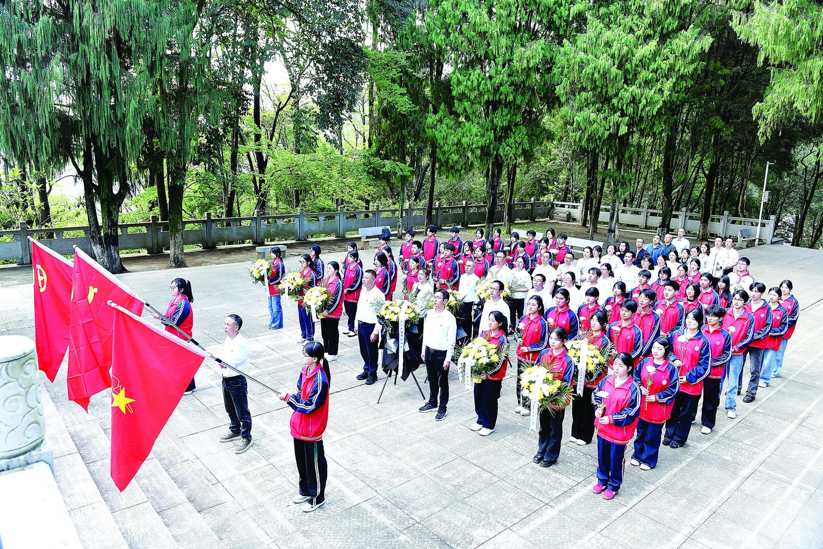 4月1日,政和二中组织师生开展清明节烈士陵园祭扫活动,追思英烈事迹,寄托深切哀思。(余长青 摄)