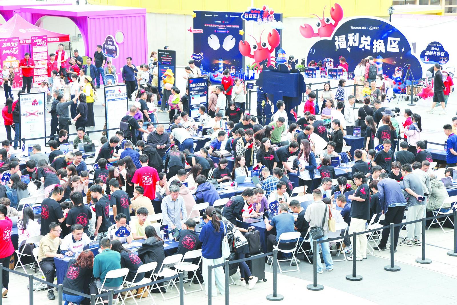 人们在深圳市龙岗区机器人街区参加“腾讯轻量云OpenClaw云上部署公益活动”。