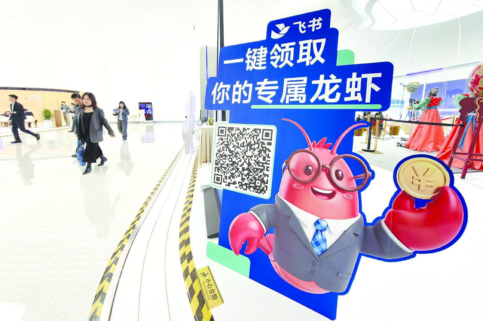 北京中关村国际创新中心大厅的飞书“龙虾”宣传板。