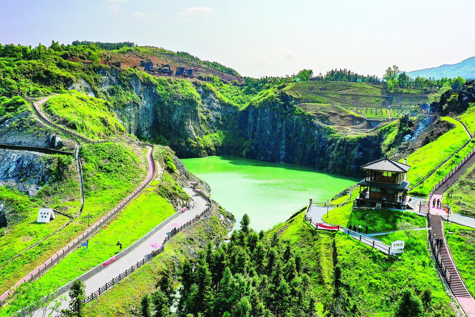 九村村位于顺昌县元坑镇,近年来结合“武夷百村”竞秀行动以及沙南高速通车契机,实施“百合种球繁育·翡翠山户外营地·水泥厂老旧小区改造”综合建设项目,构建“现代农业+生态露营+消费集群”乡村发展新格局。其中,翡翠山户外营地项目以废弃矿山转型为核心,打造综合旅游项目,实现了矿山蝶变、旅游业态升级。图为翡翠山户外营地。 (朱宇 朱城铖 摄)