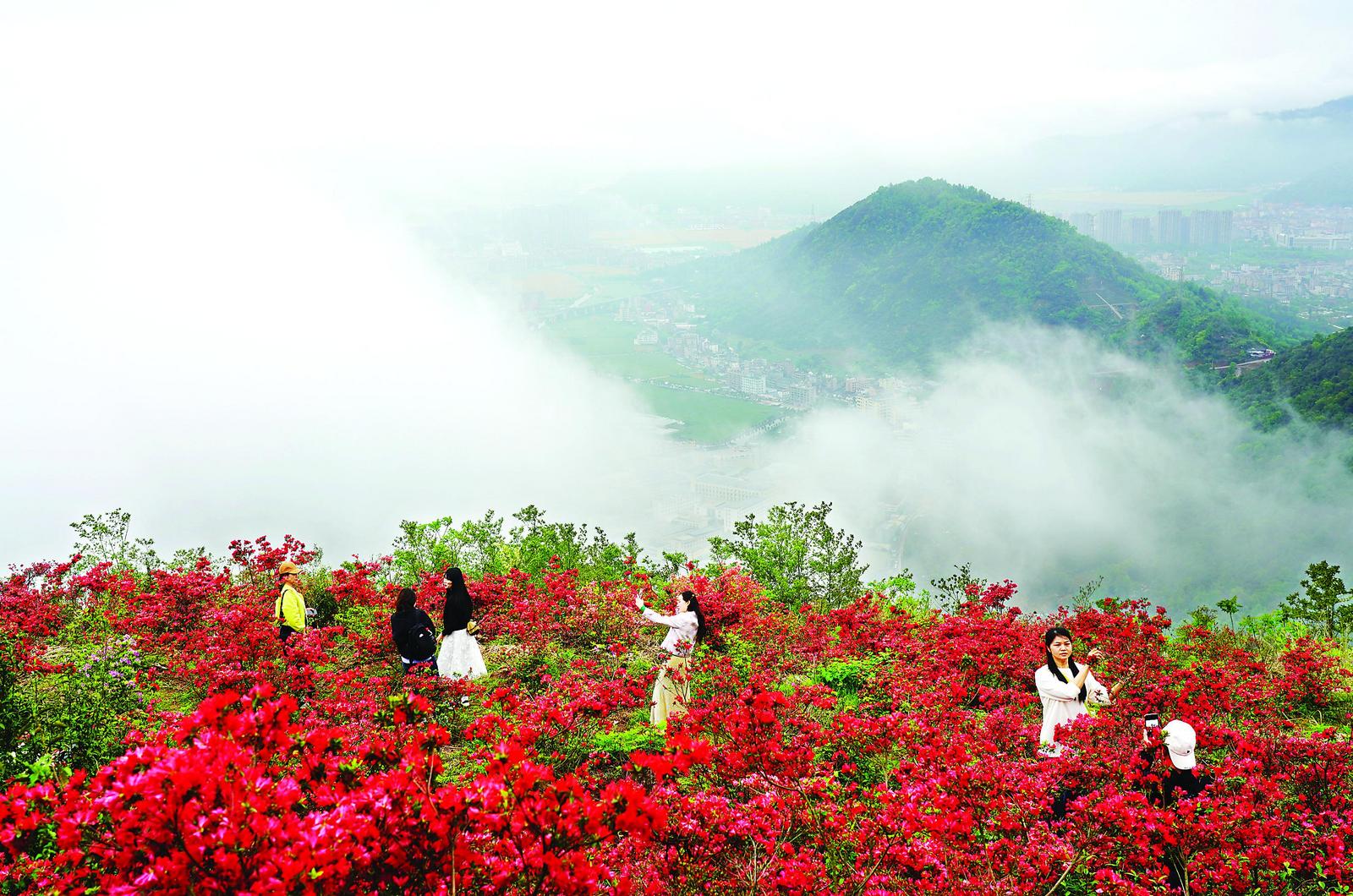 4月12日,人们在浙江省乐清市虹桥镇白龙山赏花游玩。