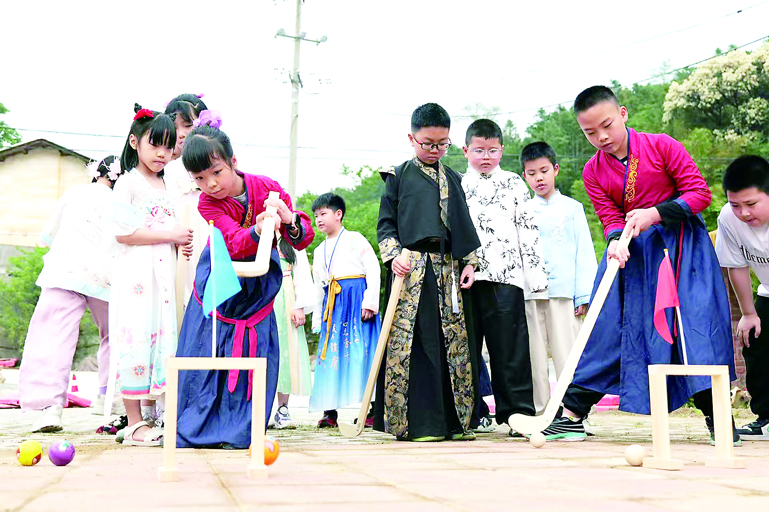 这样的课堂没有停留在讲台之上。礼堂外,投壶、捶丸等传统游戏逐一展开。余西村“土厝情”餐厅的长桌花宴以火锅搭配花糕、花酿,桌面撒花瓣,开宴仪式中的“酒三巡”互动、击鼓传花等游戏,让餐饮消费与文化体验进一步融合。