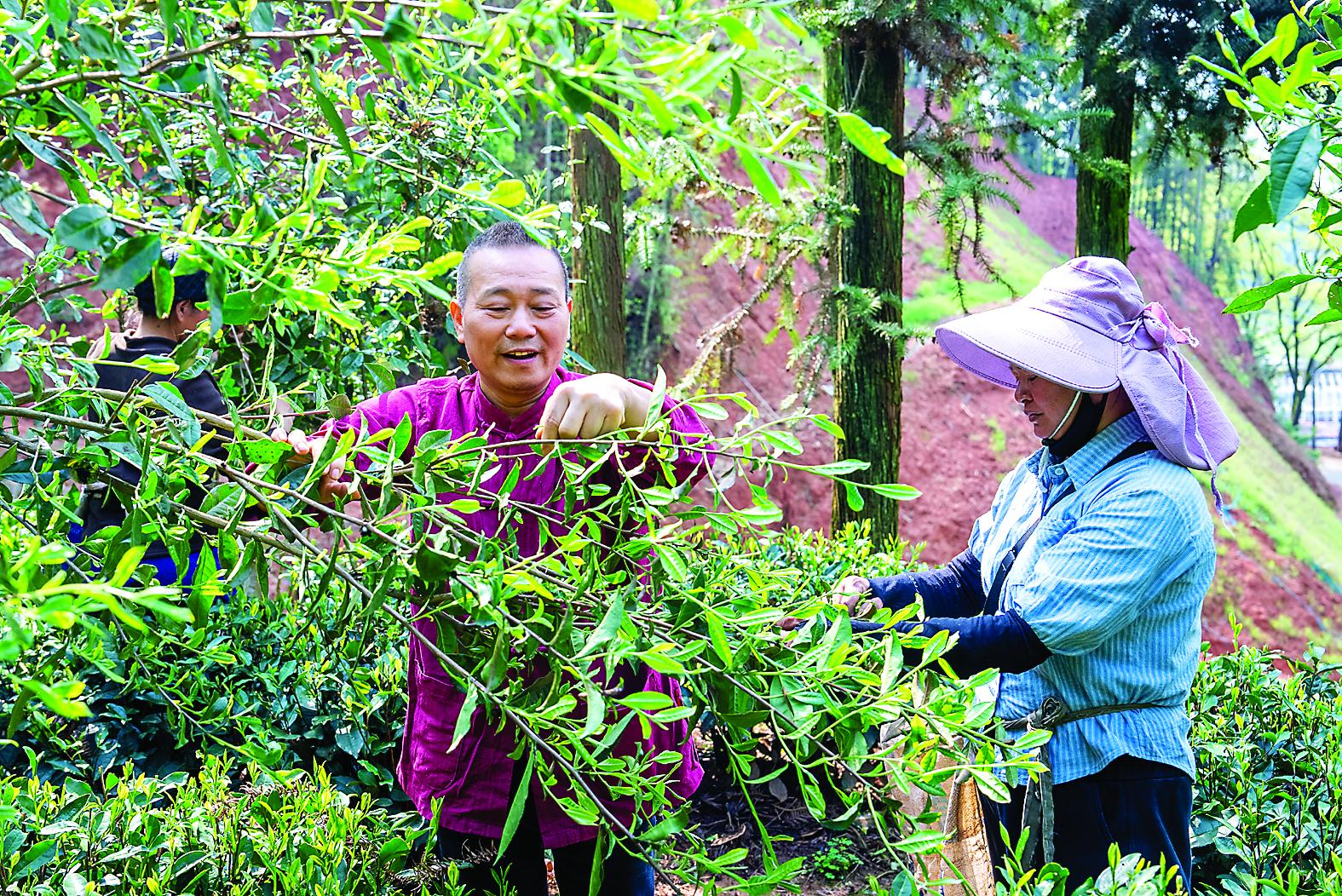 4月9日,南平市级白茶制作技艺非遗传承人吴荣标(左)正带领着茶农们穿梭在茶垄间,熟练地将枝头鲜嫩的新芽掐下、装篓。“采摘是制茶的第一道关口,直接关系着成茶的等级和品质,必须挑健壮、标准的芽头,残的和病的都不要。”他一边现场示范采摘手法,一边耐心指导身边的茶农。