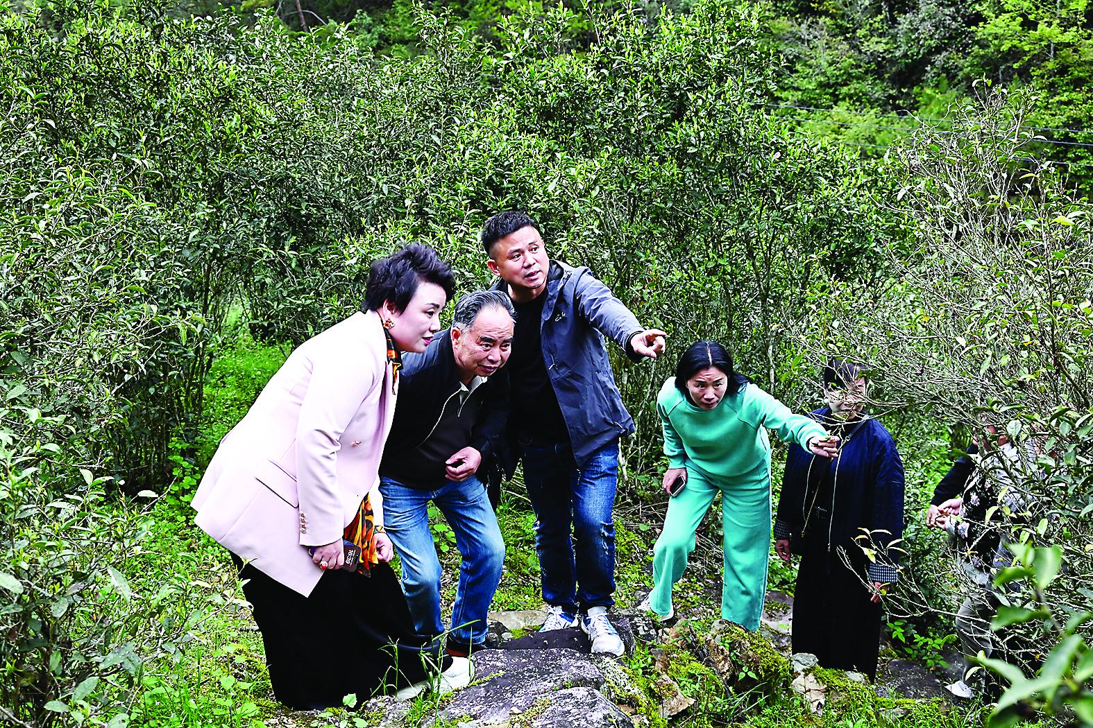 春深日暖,茶韵正浓。在政和县城前往岭腰乡锦屏村的路上,可以看到不少正忙于采摘茶青的茶农。远离村落的山涧旁,几位深耕制茶行业的“专业游客”,正在茶园主人的带领下拾级而上,谈论古茶树的形态与长势。