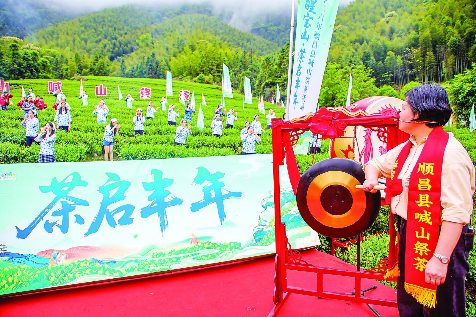 16日,顺昌县大干镇干山村茶园里,层层茶垄如绿波翻涌。当日,2026年顺昌县“春醒宝山·茶启丰年”喊山祭茶活动在大圣归莱茶园举行,祈愿春茶丰收。