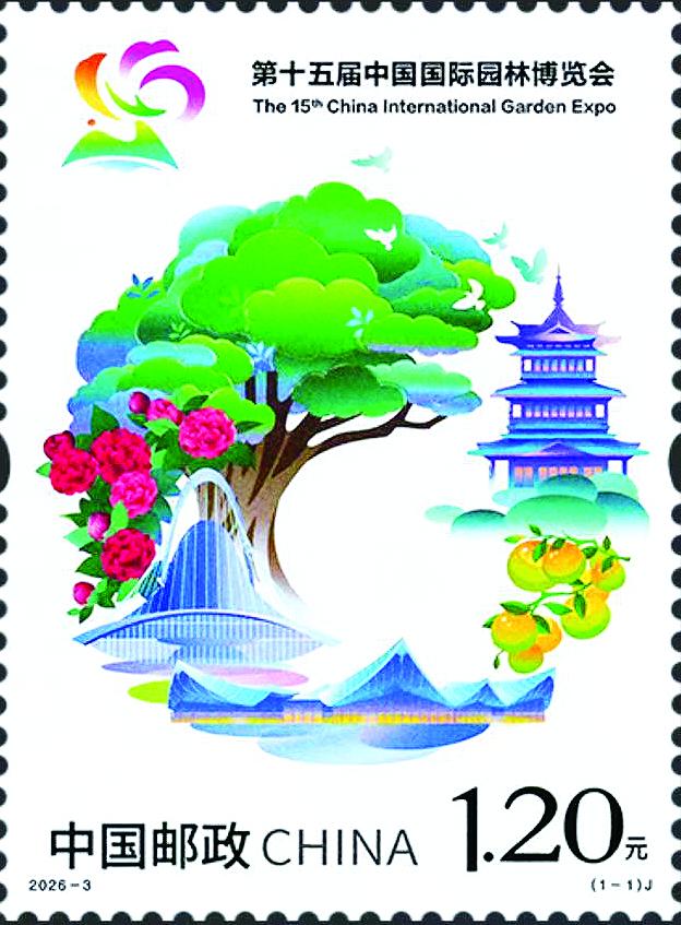 中国邮政定于2026年4月15日发行《第十五届中国国际园林博览会》纪念邮票1套1枚。邮票图案名称为:第十五届中国国际园林博览会。全套邮票面值1.20元。计划发行数量为420万套。
