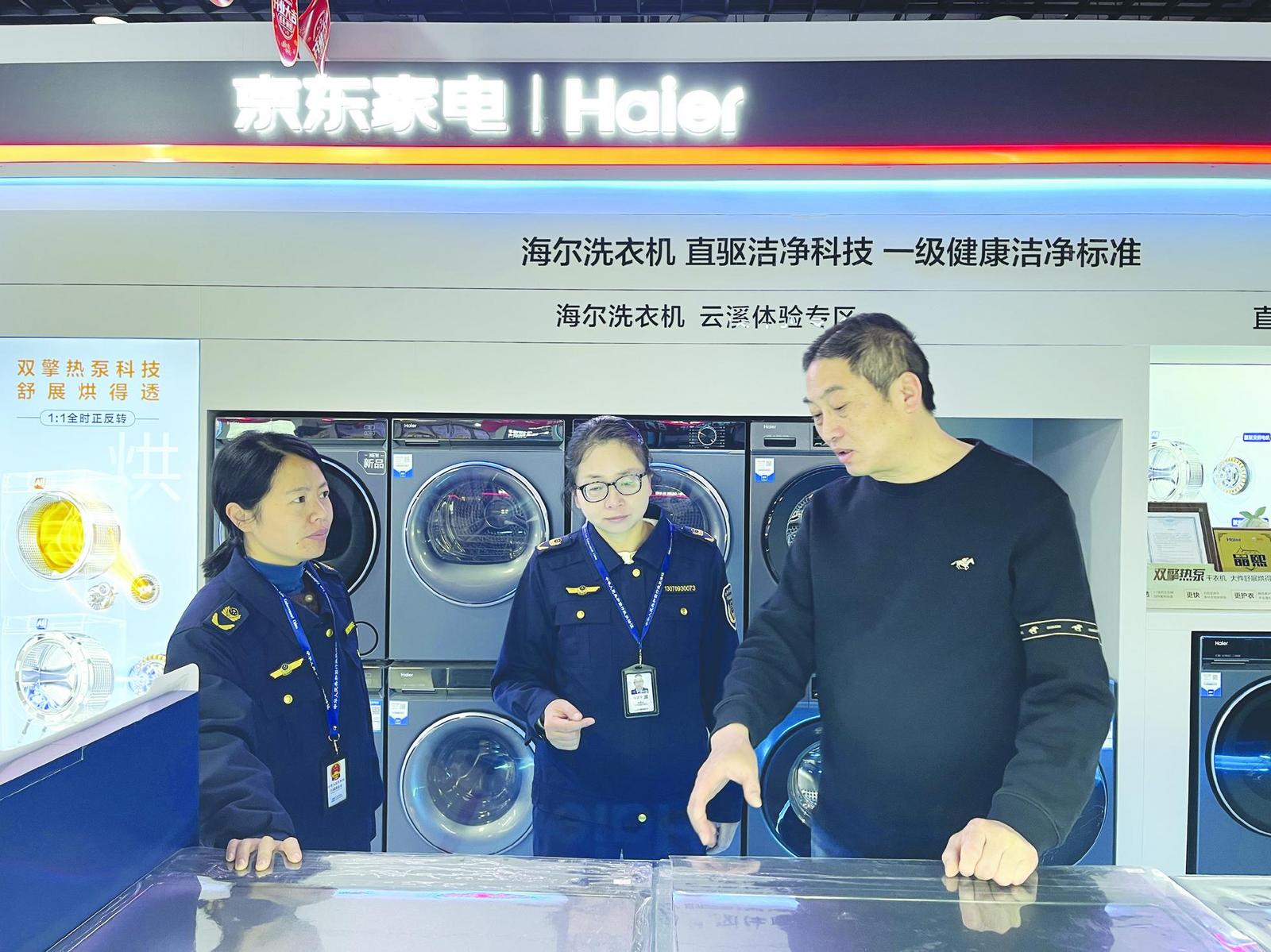 近日,松溪县市场监管局聚焦家电、数码产品等重点品类,对全县参与消费品以旧换新活动的36家经营主体开展产品质量与价格监管执法行动,严查以次充好、以旧充新、销售“三无”产品、假冒伪劣产品等违法行为,严禁借“以旧换新”捆绑销售、强制搭售、变相涨价等行为,并督促经营者加强行业自律,做好明码标价、规范促销等工作。 (王杰)