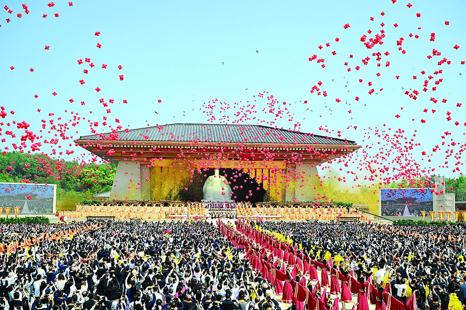 这是4月19日拍摄的丙午年黄帝故里拜祖大典现场。