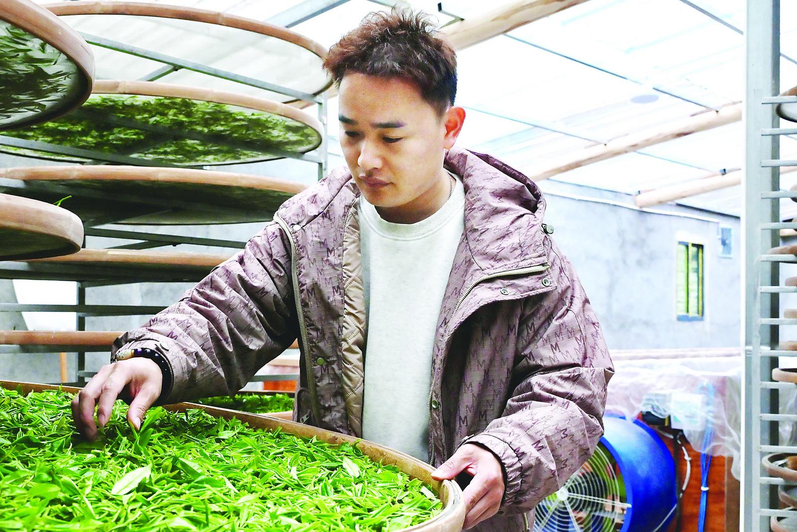 又到一年春茶季,如今在锦屏村里,李泽军常“泡”在堂姐胡霞的制茶工坊里。透明的玻璃房内,氤氲着茶香,用于萎凋的竹筛一个个整理地叠放在铁架上。“收青、晒青、并筛、筛选、焙火、提香,每一步都有功夫。”李泽军说,“做出一款大家认可的茶,是件很有成就感的事。”