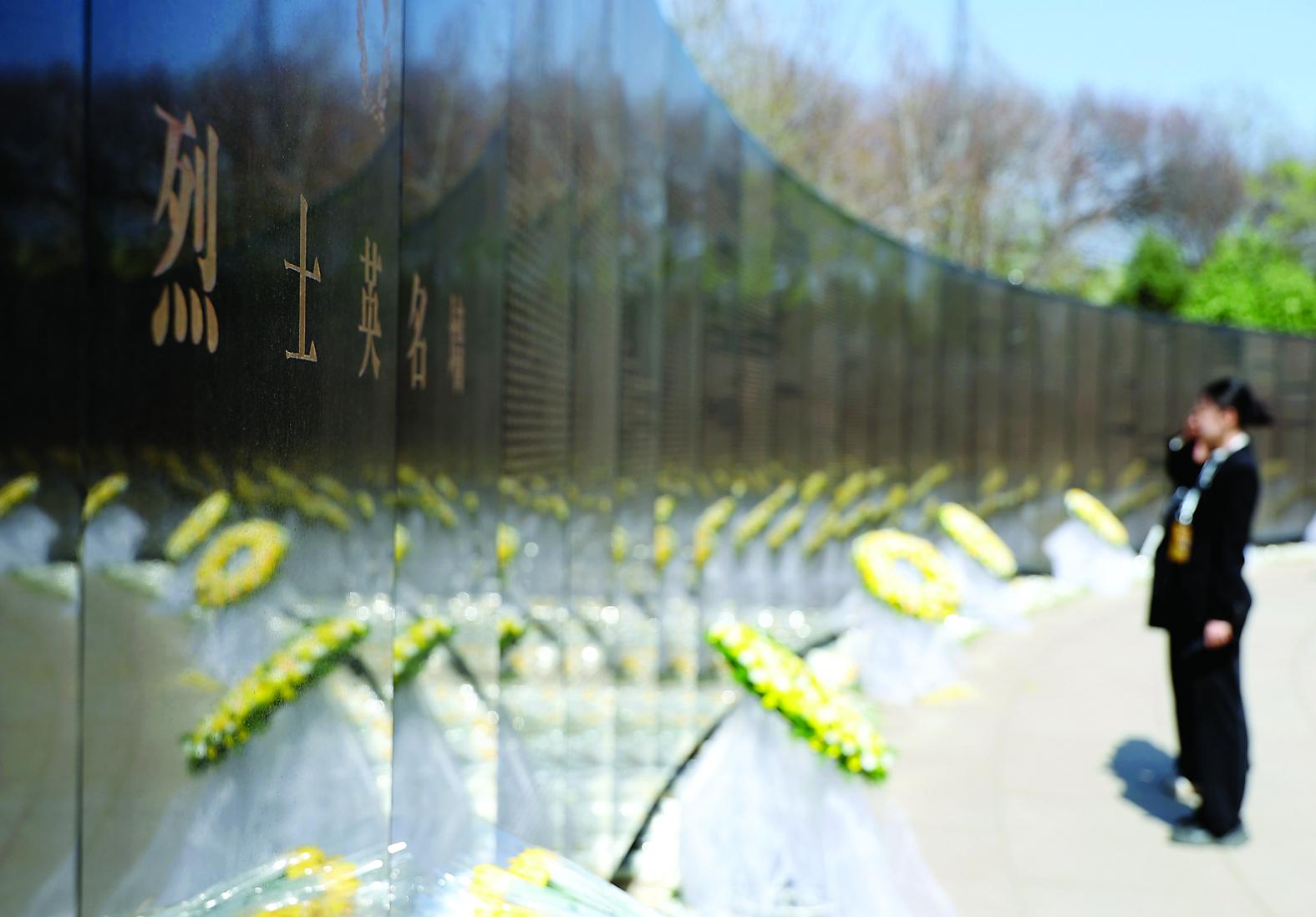 4月23日,在沈阳抗美援朝烈士陵园,人们向烈士敬献鲜花,并瞻仰烈士英名墙。