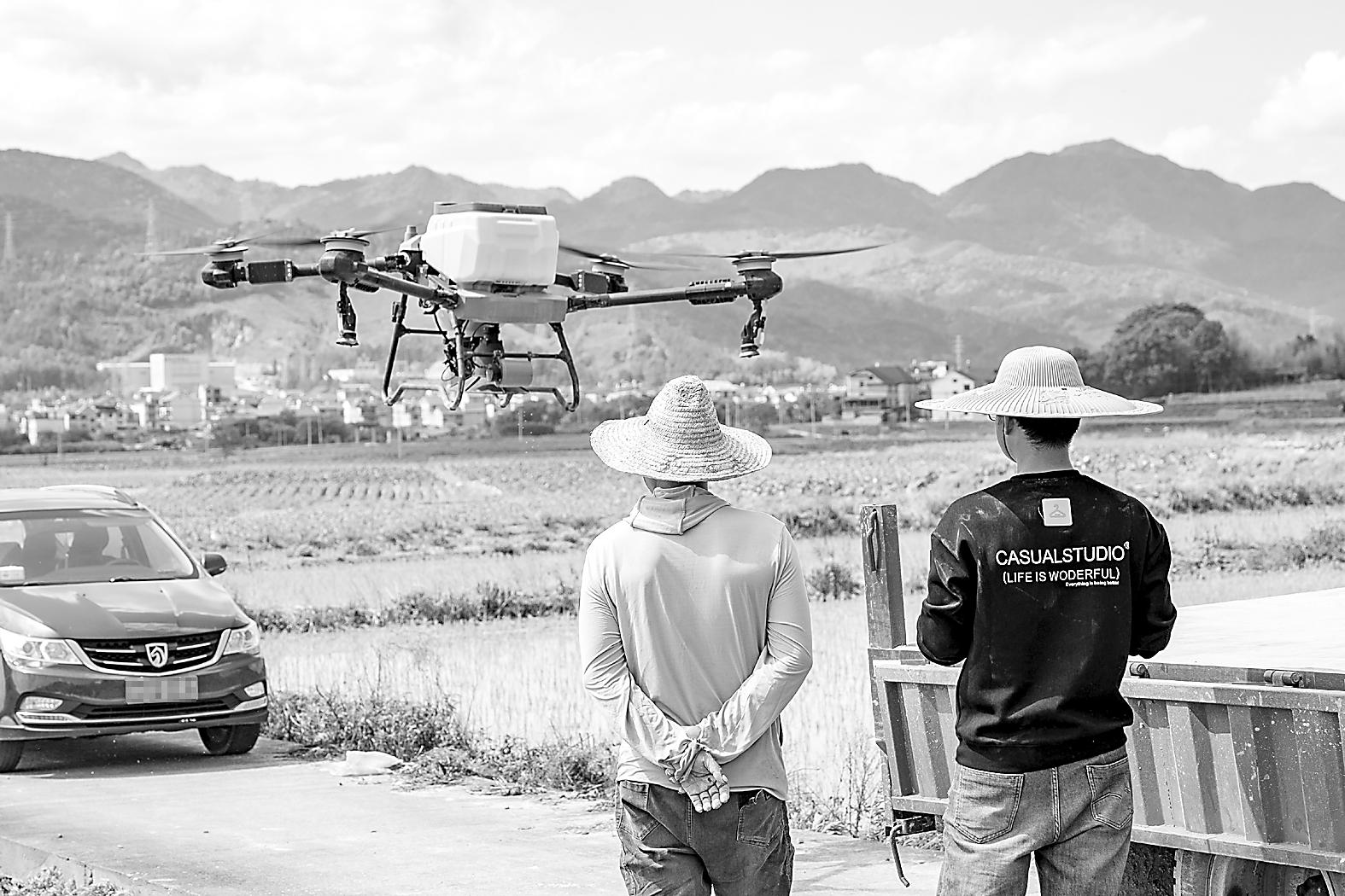 25日,在松溪县河东乡大布村的一处农田里,种植户正熟练操作无人机进行施肥作业。无人机低空掠过,肥料均匀洒落,省时省力又精准高效,科技“飞防”助力春管,为夏粮稳产增收打下坚实基础。(王德锋 摄)