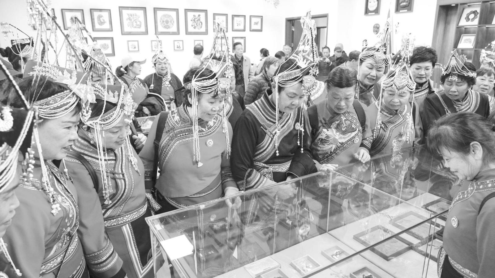 丽水老年大学学员在南平老年大学手工艺品展厅参观。 (陈子昕 陈靖 摄)