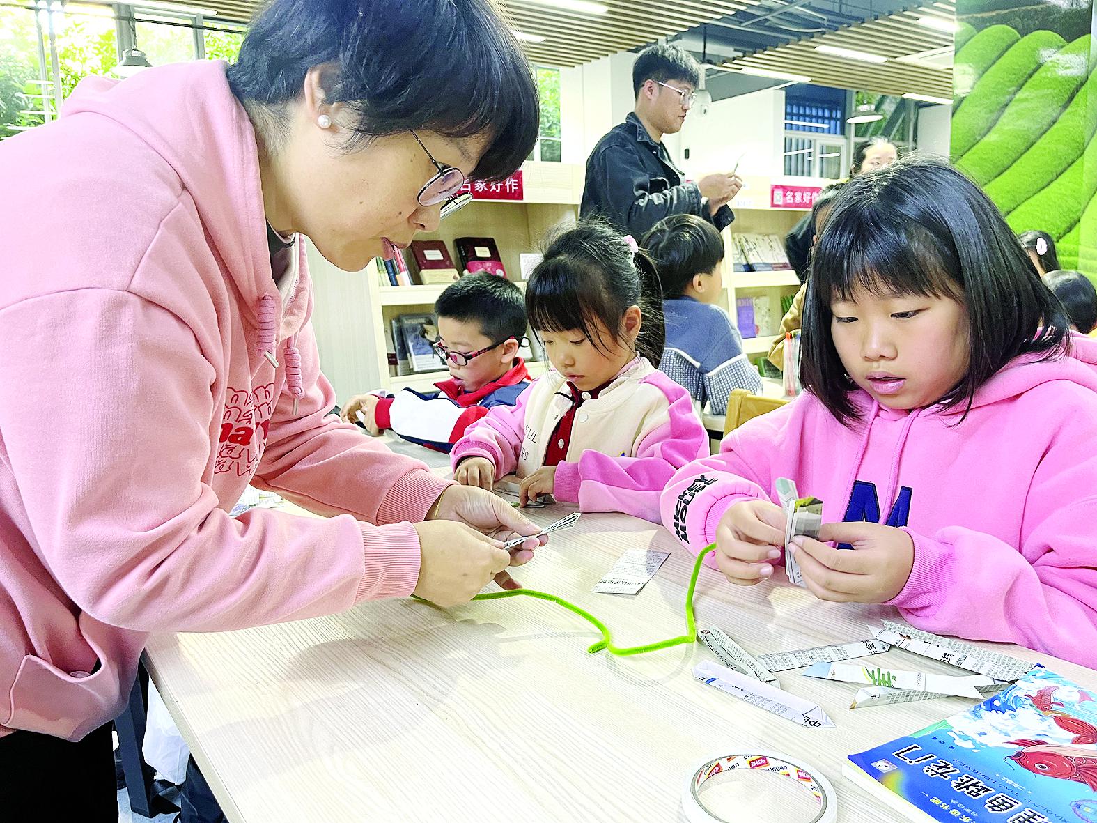本报讯(记者 张伟 文/摄)油墨飘香的报纸完成信息传递的使命后,该往何处去?为倡导绿色阅读理念,破解废旧报纸回收处理难题,11月22日,闽北日报“南平发布”App联合南平市新华书店,举办了一场以“旧书循环&旧报纸创意”为主题的亲子研学活动。活动以趣味互动与实践创作为核心,既助力提升亲子家庭的信息整合能力,更让环保理念深植人心,让一张张废旧报刊在巧手中焕发新生。